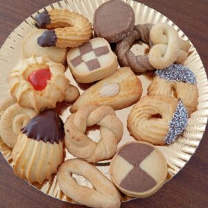 Harina de trigo, mantequilla, azúcar glass (azúcar , almidón 3%),almendra molida, cabello de ángel (sulfitos, pulpa de calabaza de sidra, jarabe de glucosa y fructosa, estabilizantes: almidón modificado de maíz (1442), goma guar(E- 412)acidulante: ácido cítrico(E- 330),aroma canela, leche, bebida anisada 28%, chocolate negro(pasta de cacao, manteca de cacao, emulgente: lecitina(soja)aroma natural de vainilla.