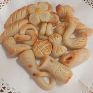 Harina de trigo, manteca de cerdo, azúcar, aceite girasol, vino blanco (contiene sulfitos), gaseosa: gasificante E-500(Bicarbonato sódico), acidulante: E-330(ácido cítrico) y edulcorante E-954(sacarina sódica), ralladura de limón.